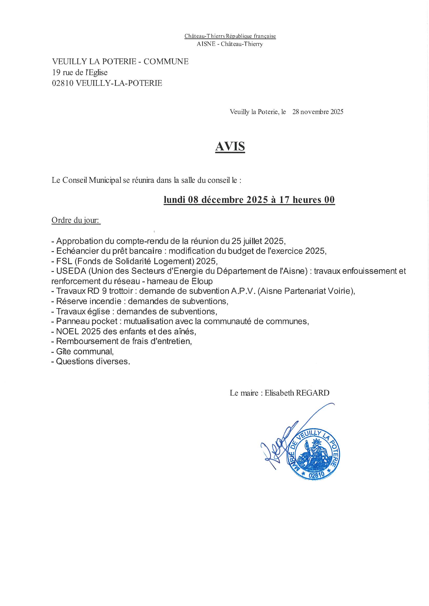 PROCHAINE REUNION DU CONSEIL MUNICIPAL