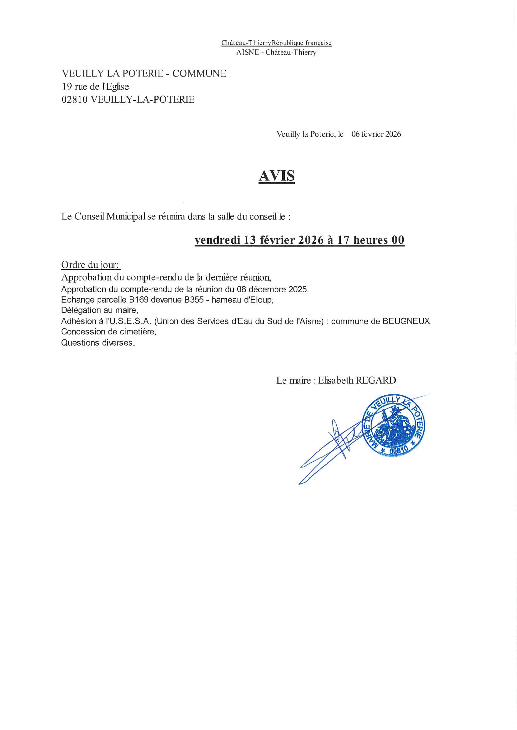 PROCHAINE REUNION DU CONSEIL MUNICIPAL