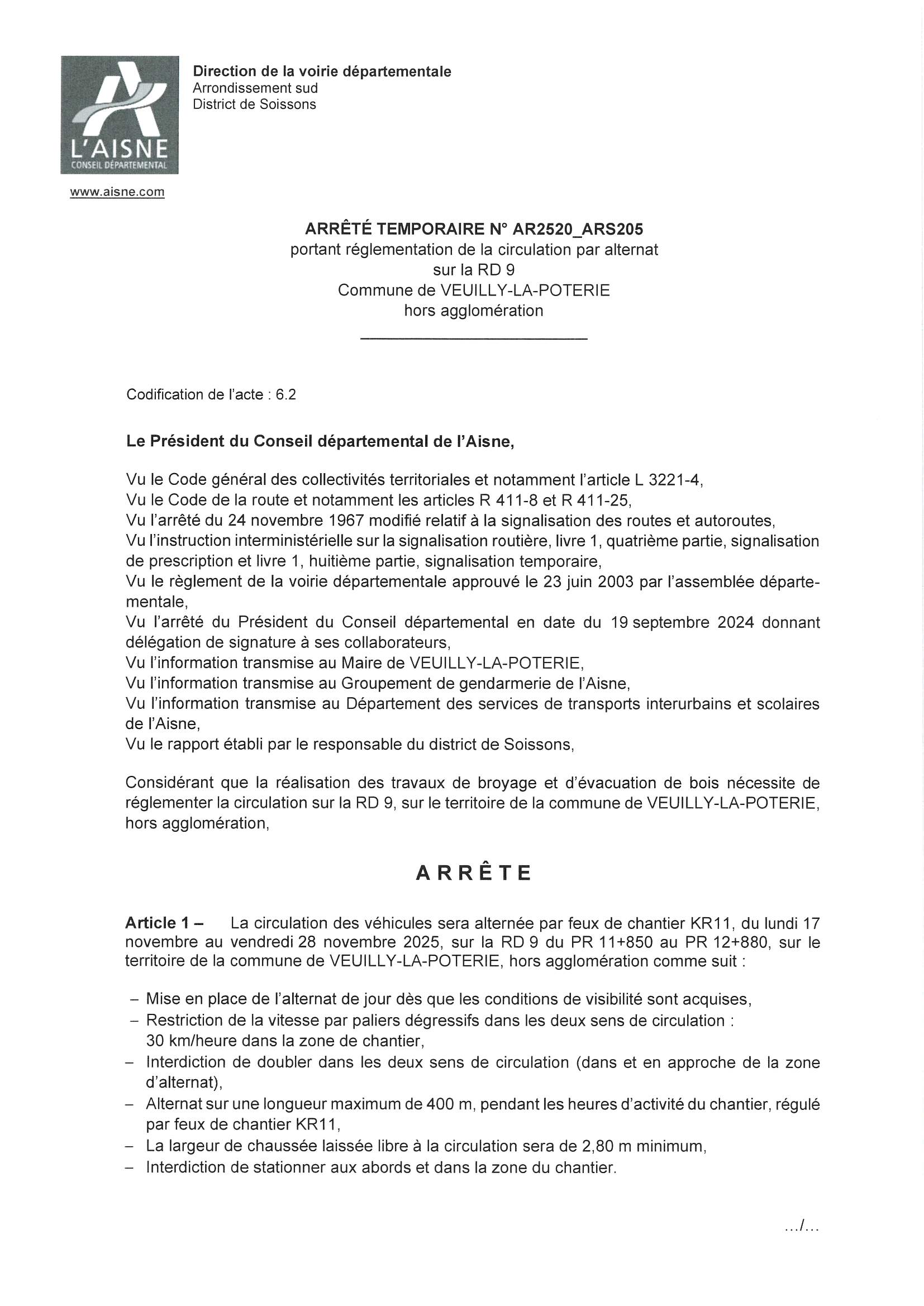 CIRCULATION ALTERNEE RD9 route de CHATEAU-THIERRY